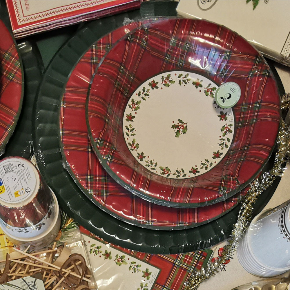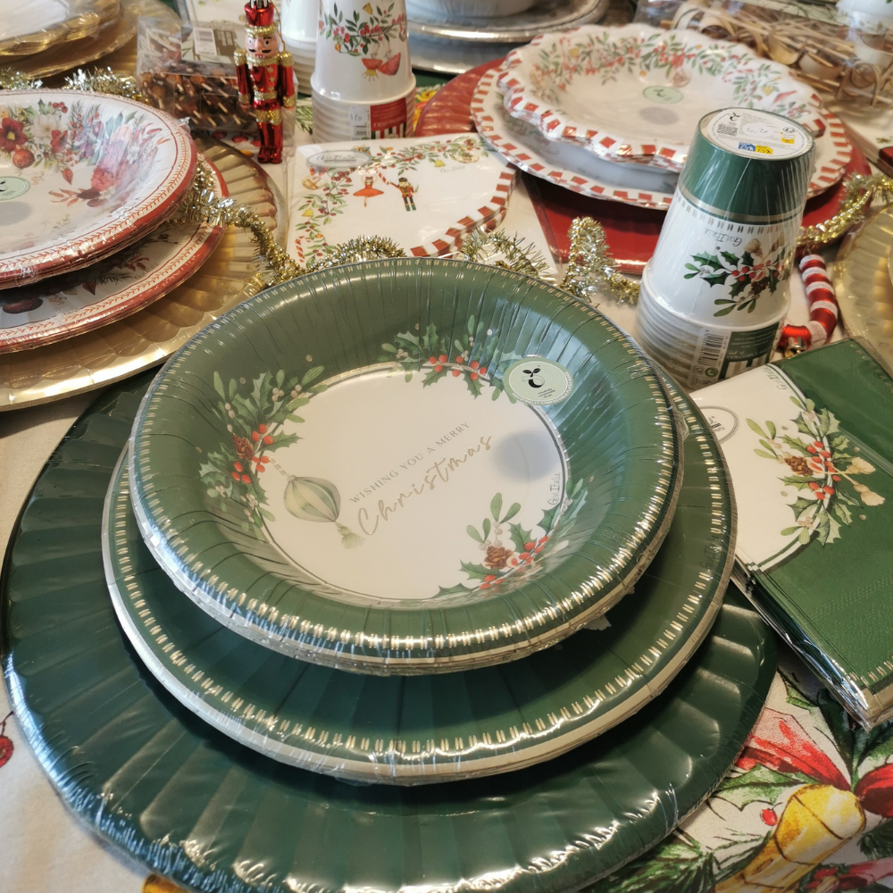 Nel nostro negozio proponiamo un assortimento di prodotti monouso a tema natalizio pensato per unire praticità, igiene e cura estetica durante le festività. La gamma comprende tovaglie, tovaglioli, piatti, bicchieri e accessori coordinati, decorati con motivi tradizionali come ghirlande, agrifogli e dettagli festivi nei colori tipici del Natale.